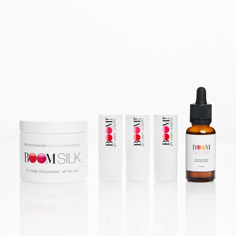 Start with Boomstick Glo to moisturize your face with 100% organic ingredients direct from the beehive. Then apply Boomstick Color to your cheeks, forehead, neck, and décolleté to give yourself a look of excitement. Finally, add a little glamour to your skin with Boomstick Glimmer.